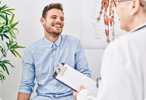 Die Untersuchung umfasst eine ausführliche Anamnese zu Beschwerden und familiären Vorbelastungen sowie die körperliche Untersuchung des männlichen Genitales und der Prostata. Ab dem 50. Lebensjahr wird zusätzlich ein Test auf verstecktes Blut im Stuhl durchgeführt, der Hinweise auf Darmkrebs geben kann. Die Untersuchung erfolgt diskret und professionell in angenehmer Atmosphäre.